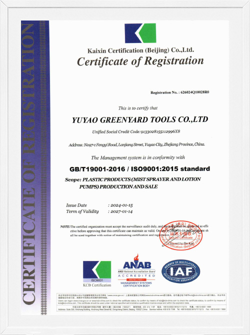 Компания GreenYard Tools Co.,ltd. специализируется на производстве распылительной продукции уже 16 лет, в основном производя распылители духов, головки насосов, а также различные колпачки и флаконы для ежедневной упаковки химикатов, с ежедневной производственной мощностью один миллион единиц. Компания обладает передовыми возможностями в области проектирования пресс-форм, литья под давлением и автоматизированной сборки при поддержке профессиональной группы контроля качества для обеспечения надежности продукции. Специальная команда дизайнеров постоянно внедряет инновации в продукцию, предоставляя клиентам высококачественные решения для распыления.